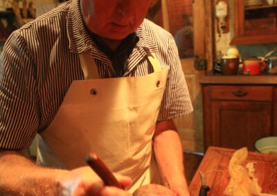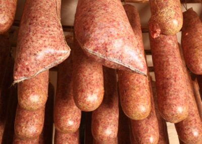 Wie schon vor Jahrhunderten gehört auch heute noch im Klausenhof das Schlachten dazu. Nach alten Rezepturen wird das Schwein schlachtwarm zu den sprichwörtlich berühmten Eichsfelder Spezialitäten verarbeitet. Im Klausenhof reift die Wurst noch wie zu Zeiten der Vorväter in der alten Lehmwurstekammer.