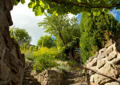 Unterhalb der Burg Hanstein liegt der Burgarten mit historischem Weinberg.