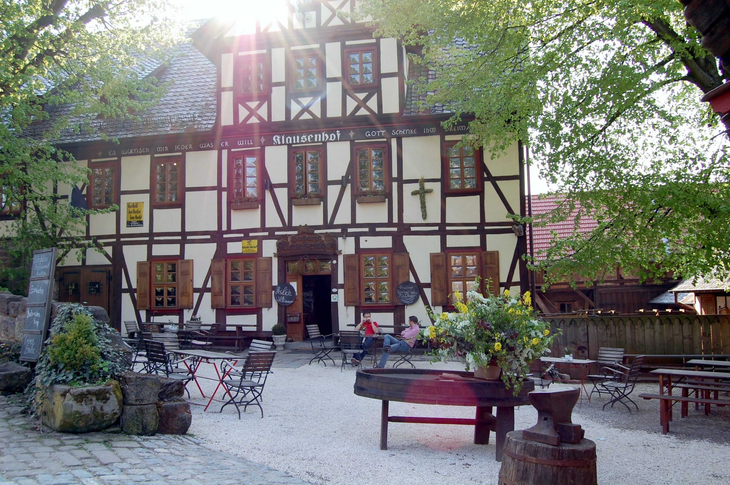 Klausenhof Aussenansicht mit Sonnenstrahl